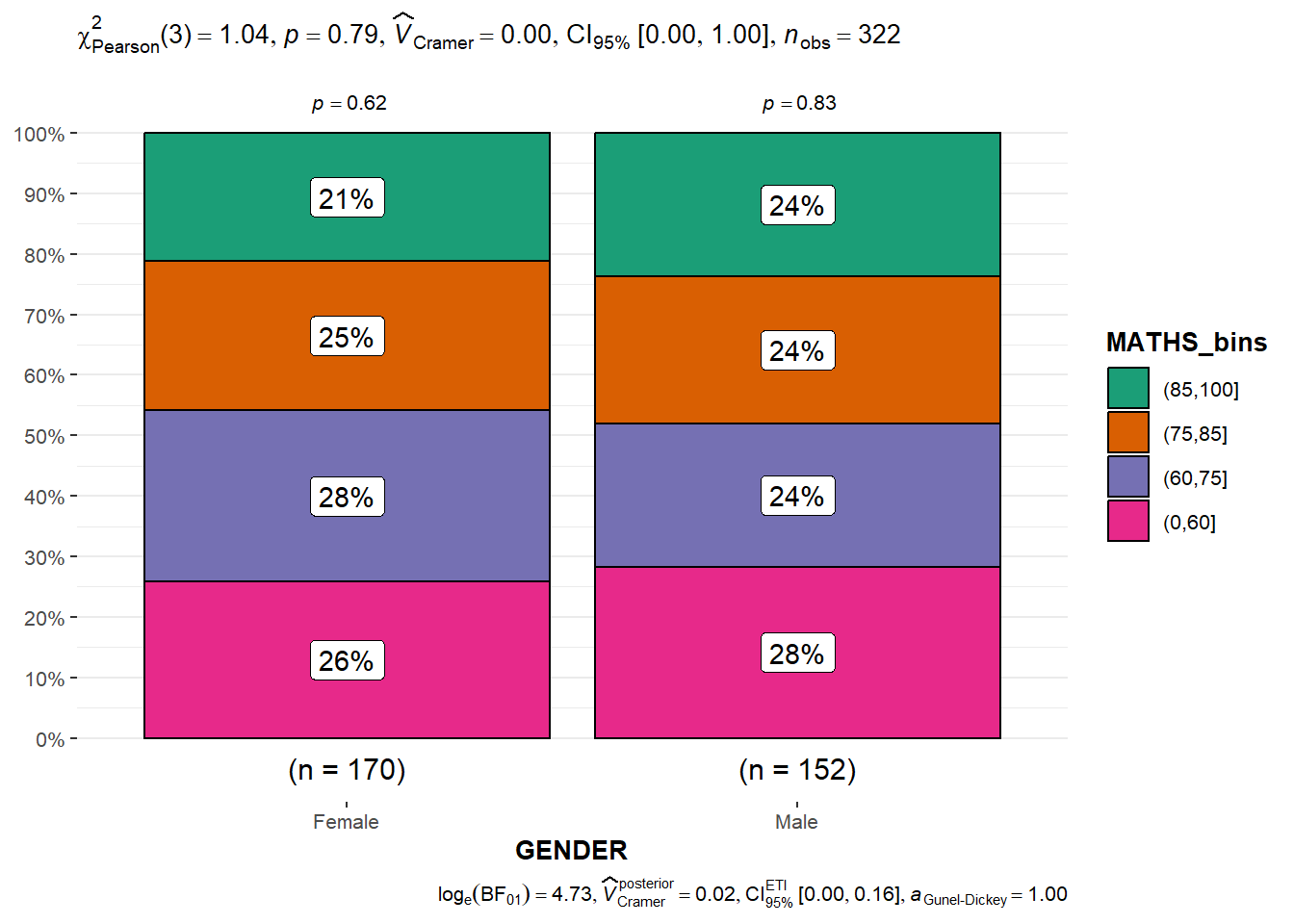 Significant Test of Association (Depedence) : ggbarstats() methods